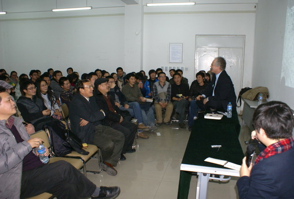 在演讲中,格瑞格先生首先分析了当今艺术现状、艺术家的生存发展问题及在艺术商业化的今天艺术家如何看待名与利,在饱受信息干扰的环境中如何倾听自己内心深处的声音、打开自己的内心世界等。格瑞格先生结合自己对艺术的感悟,提出了对现代艺术家应该何去何从的认识。随后格瑞格先生介绍了佛蒙特艺术中心的历史、运作模式、艺术家的生活和创作环境,尤其是对该机构如何帮助艺术家坚持艺术道路的问题作了详细解答。最后他介绍了该中心的中国艺术家项目以及与我校的合作事宜。