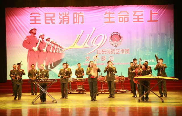11月9日晚,由山东消防艺术团主办,艺术实践中心承办的“全民消防 生命至上——山东省暨济南市‘119’消防文艺晚会”在我校文东校区大剧场成功举办。我校院长张志民,省公安厅副厅长、警察学院院长王献增,省公安消防总队总队长王郭社、政委刘海,山东消防艺术团政委、省公安消防总队副总队长亓延军,山东消防艺术团团长、我校副院长郭跃进,我校副院长高启光等领导与500余名消防官兵、学生及驻济新闻界人士共同欣赏了这场精彩的艺术盛宴。本场晚会也是山东省人大今年3月1日重新修订实施《山东省消防条例》、并将每年的11月确定为全省消防安全宣传月后的首场大型文艺演出。