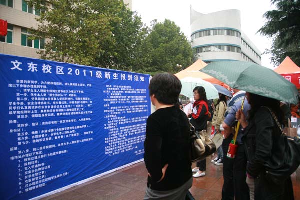 9月15日,学校到处是一片热闹忙碌的景象,2011级新生2525名本科生和191名研究生正陆续入学报到。