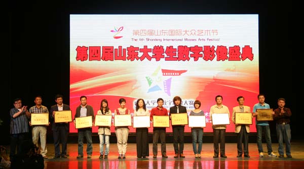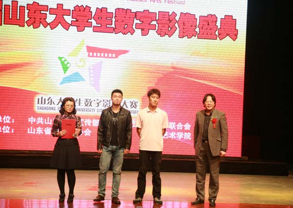 “第四届山东大学生数字影像大赛”历时近半年,来自全省30余所高校院系和部分省外高校的近700部作品参加了角逐。我校传媒学院学生作品《野草》荣获音乐短片(原创)一等奖,《嘿,我要走了》荣获音乐短片三等奖;戏剧影视学院学生作品《我要挣钱》、《他怎么还没来》和传媒学院学生作品《瓶子爸爸》荣获故事片三等奖,其中作品《他怎么还没来》荣获优秀女演员奖;传媒学院作品《红色印记》荣获纪录片三等奖;戏剧影视学院作品《戒》荣获故事片特别奖。艺术实践中心、戏剧影视学院、设计学院、传媒学院分别获得优秀组织奖。