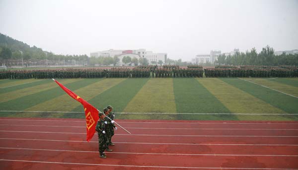 金秋九月,丹桂飘香,在这收获的季节里,9月29日上午,我校2011-2012学年开学典礼暨新生军训汇报大会在长清校区操场举行。校党委书记任运河,院长张志民,副院长刘大力、王力克、高启光以及济南军区坦克乘员训练基地副政委侯宗运在主席台就座。典礼由副院长刘大力主持。学校相关职能部门及二级学院领导同志参加了大会。