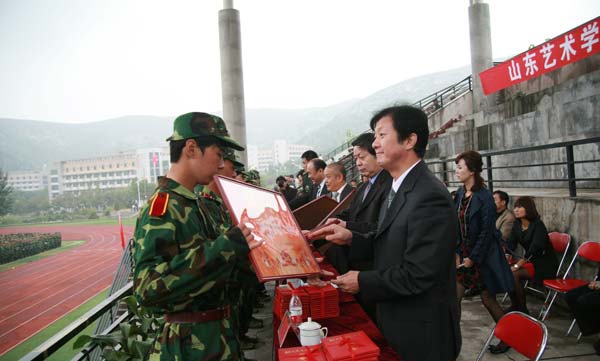 典礼上,张志民院长发表了热情洋溢的讲话。张志民院长首先代表学校和广大师生员工,向同学们以优异成绩考入山东艺术学院,成为一名山艺人,表示衷心的祝贺和热烈的欢迎,向在军训中付出辛劳和汗水的全体施训教官表示崇高的敬意和诚挚的感谢。