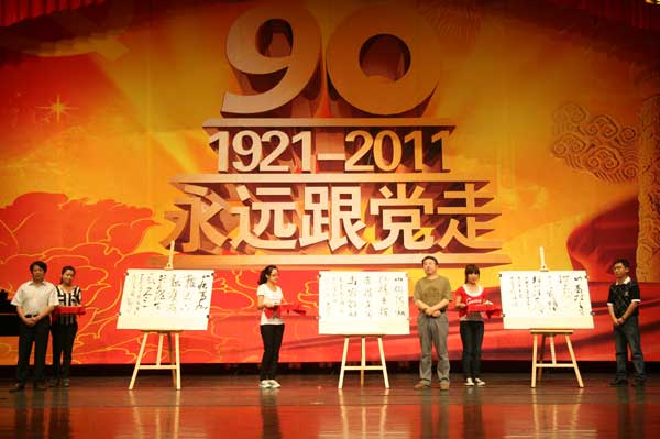 表彰大会结束后,出席大会的学校领导与全体党员同志一同观看了我校庆祝建党90周年文艺演出。