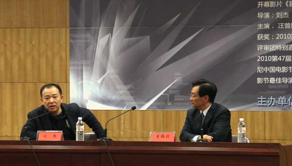 刘杰导演随后在开幕式上致辞。他首先向山东艺术学院将《碧罗雪山》作为电影节的开幕影片并盛情邀请他来做现场交流表示诚挚的谢意。他向广大师生介绍了自己的艺术创作经历,以及对新时期以来中国电影文化和电影产业发展变化的看法。同时,殷殷嘱托广大青年学子,在今后的艺术专业学习及工作实践中,要打好坚实基础,要有准确人生定位,并将中国电影的未来寄托于80后、90后的年青一代。刘杰导演在致辞中指点人生,畅谈电影,字字珠玑,妙趣横生,掀起了开幕式的第一个高潮。