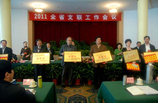 4月20日上午,2011全省文联工作会议在南郊宾馆举行。省文联副主席、我校副院长郭跃进,艺术实践中心负责人参加会议。会议表彰了“山东省泰山文艺奖”组织工作先进单位,我校获得“山东省泰山文艺奖组织奖”荣誉称号。