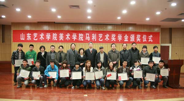 3月14日上午,山东艺术学院美术学院第二届马利艺术奖学金颁奖仪式在长清校区图书馆报告厅举行。校领导张志民、郭跃进、刘大力、王力克,上海实业马利画材有限公司副总经理徐文富先生出席颁奖仪式,我校教务处、美术学院相关负责人和美术学院师生300余人参加颁奖仪式。