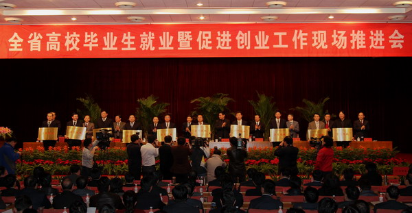 会上,部分市府及高校做了典型发言,同时公布了由省人力资源和社会保障厅等十部门联合实施的“大学生创业引领计划”。