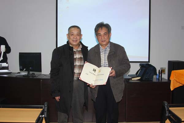 11月30日,原中央歌剧院院长、著名作曲家王世光来我校举办学术讲座并受聘为我校客座教授,张志民院长为王世光先生颁发聘书。