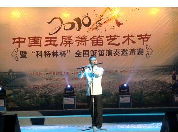 此次大赛由贵州省文化厅、中国音乐学院、中国箫笛艺术研究中心、中共铜仁地委、铜仁地区行署主办,文化部非物质文化遗产司司长马文辉、中国音乐学院院长赵塔里木及贵州省、地相关领导出席了开幕式。大赛集中了来自中国音乐学院、上海音乐学院等全国九大音乐院校、艺术院校和其它综合院校音乐专业师生以及各地箫笛演奏者同台竞技。中国竹笛学会会长、中国音乐学院张维良教授、中央音乐学院戴亚教授、上海音乐学院詹永明教授、国家一级演奏员李镇先生、我校音乐学院郝益军教授等全国知名的十五位专家担当评委,确保了大赛的权威性和公正性。经过初赛、复赛和决赛的激烈竞争,我校音乐学院笛子专业研究生姜伟强勇夺综合组金奖,李展、石硕获得铜奖,充分展示了我校在笛子专业方面的教学成果。