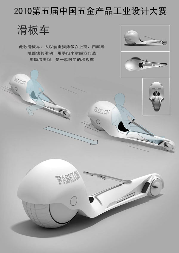 大赛分设1等奖1名,2等奖1名,3等奖3名。在本次大赛中由我校设计学院王大海、朱旭和姚敬旭三位教师指导的08产品造型专业学生张春雷的滑板车设计喜获大赛铜奖,获奖金3000元和证书、水晶奖杯;学生王文浩电饼铛设计获得入围奖,并应邀参加博览会暨大赛颁奖大会。