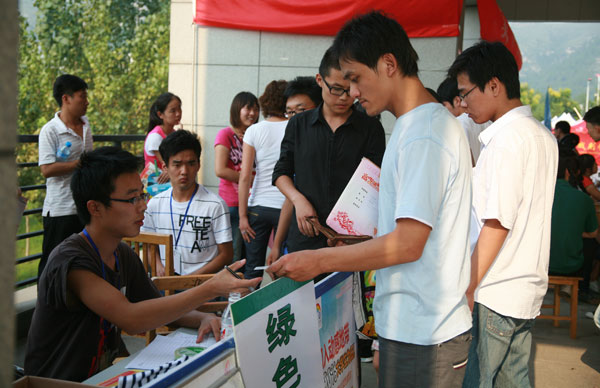 今年新生报到期间,正是“秋老虎”肆虐的时候,31度的高温给前来报到的新生及陪同的家长们造成了一定的不便。为给大家提供一个清爽便捷的报到环境,学院用200余顶帐篷为新生及家长们搭建起了一个清凉舒适、方便快捷的迎新通道。同时,学院将往年军训用品发放、医保费代收及新生入学须知等其它材料的发放工作提前安排到了通道的前半部分中,极大地避免了报到手续办理过程中的扎堆现象。迎新通道一直通到设在艺术文化学院一楼的报到大厅里。在那里2010级新生经过验证、交费、盖章、领校园卡等步骤,便可到各二级学院的迎新分理处报到登记、领取钥匙,在迎新工作人员的带领下入住到宿舍中。学院还为困难学生专设了绿色通道,并通过向他们发放“绿色通行卡”、简化报到手续的办法,保障贫困学子顺利入学;截止到报到结束,有65名困难学生通过绿色通道入住山艺。