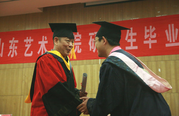 6月28日上午9时,在国歌的庄严旋律中,我校2010届硕士研究生毕业典礼暨硕士学位授予仪式在长清校区图书馆报告厅隆重举行。校党委书记柳文敏,院长张志民,党委副书记、纪委书记刘致兴,副院长郭跃进、刘大力、王力克、刘晓静在主席台就座。典礼由党委副书记、纪委书记刘致兴主持,各二级学院、各部门相关负责人,研究生导师、研究生任课教师、全体研究生及毕业研究生的亲友们参加了典礼。