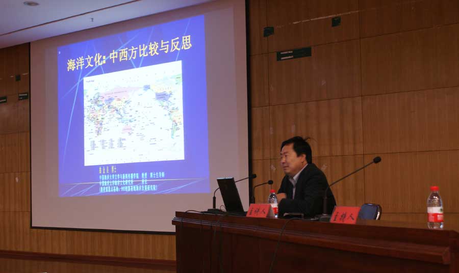5月11日下午,中国海洋大学文学与新闻传播学院教授、海洋文化研究所所长、国家文化产业研究中心海洋发展研究院研究员暨学科负责人、中韩海洋文化研究中心主任曲金良博士做客在我校举办的“齐鲁讲坛·文化艺术分坛”,举行了题为“东西方海洋文化比较”的学术讲座。艺文学院、美术学院、设计学院400余名学生聆听了讲座。