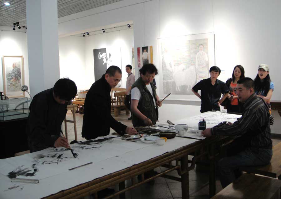 此次展览展出我校美术学院梁文博教授、岳海波教授、党震副教授、我校校友卢冰(中国美术家协会会员,山东画院高级画师)、于新生(山东工艺美术学院教授,1988年毕业于山东艺术学院)、2007级水墨人物画专业研究生刘庆国(师从岳海波教授)42幅,其中除十一届美展获奖作品外,同时展出的还有画家近期的多幅精品力作。