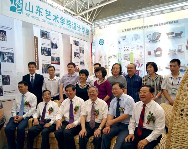 设计学院依托我校鲁锦研发的独有资源和中国柳编之都临沭的四家实习基地,成立了由环艺系主任王大海和朱旭老师负责的研发团队,将两种手工技艺引入设计学院本科和研究生设计教学中,历经3个月的时间,对鲁锦和柳编的历史、技艺和市场进行了综合调研,在近百件创新作品中选出30余件新产品参加本次展会。山东省委常委、副省长王军民,省政协副主席齐乃贵等领导专家亲临我校展区,详细询问了我校将民间手工技艺引入大学课堂的教学情况,充分肯定了我校长期以来一直关注民间民族文化的学术精神,对我校保护传承与创新民间手工艺新产品的研发模式给予了好评。