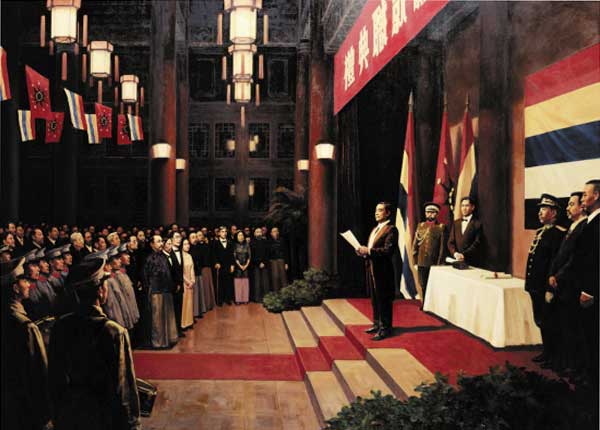 该作品系国家重大历史题材美术创作工程入选作品。此项工程是在中宣部的大力支持下,由文化部、财政部联合实施的大型主题性美术创作工程,国家财政投资1亿元专项资金,用于集中创作表现自1840年至今我国重大历史事件的大型主题性美术作品。此项工程入选作品共计102件,其中我省有《开创共和·孙中山就任临时大总统》等三件入选。