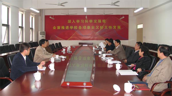 10月22日上午,省属高校学习实践活动指导检查二组组长、山东师范大学原党委副书记李荣升,指导检查组成员、山东理工大学教务处副处长刘元义、青岛科技大学党委宣传部副科长马寒一行三人来我院检查指导学习实践活动整改落实后续工作的开展情况。我院学习实践活动领导小组组长、党委书记柳文敏,领导小组副组长、党委副书记朱德强、刘致兴,领导小组成员、副院长郭跃进,副院长刘晓静以及学院学习实践活动领导小组办公室各工作组组长参加了汇报会。