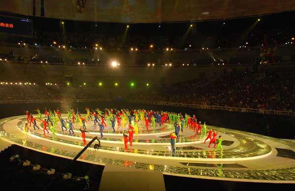 为了全运会的开闭幕式演出,舞蹈学院的师生们放弃了暑假、中秋和国庆的休息时间,牺牲了半个学期的上课时间,但他们无怨无悔。四年一次的运动盛会,每个学生或许只有一次参与的机会,能站在全运会的舞台上,面对亿万的观众,已是无限的光荣。
