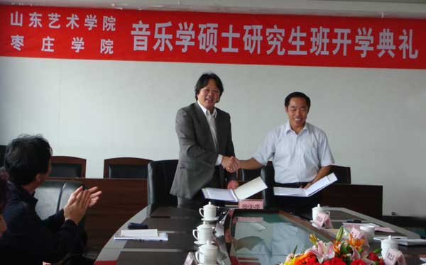 9月24日上午10点,我校音乐学硕士研究生校外班开学典礼在枣庄学院隆重举行,我校副院长王力克,研究生处、音乐学院负责人,枣庄学院副院长李进京、音乐系党政领导及20余位学员参加了典礼。