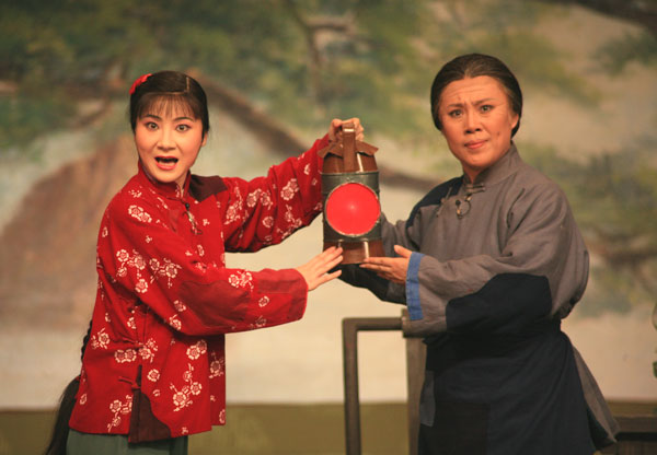 演出在全体演员《甘洒热血写春秋》的激昂唱腔中落下帷幕。结束后,院领导走上台与演员们一一握手,对他们的精彩表演表示感谢,并合影留念。