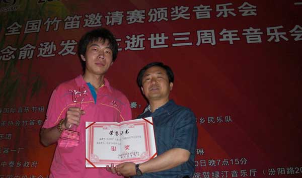 5月10日, “上海之春”国际音乐节全国竹笛邀请赛在上海音乐学院贺绿汀音乐厅落下帷幕。我院音乐学院2007级本科竹笛专业学生潘勇刚一路通过初赛、复赛和决赛,一举进入全国前三甲,荣获专业青年乙组银奖,潘勇刚的指导教师郝益军教授荣获“优秀教师奖”。此奖只授予获得专业组金、银、铜奖的指导教师。来自全国各大专业音乐艺术院校、专业文艺团体的近100位专业选手参加了此次比赛。