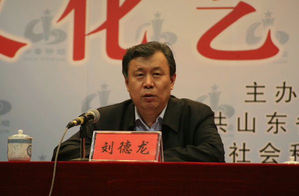 省社科联党组书记、常务副主席刘德龙同志代表省社联和“齐鲁讲坛”总坛致词,高度评价了创办“齐鲁讲坛·文化艺术分坛”的意义。他说,齐鲁讲坛落户山东省文化艺术教育、科研和创作的最高学府,不仅是山东艺术学院的一件大事,也是我省社会科学和文化艺术发展的一件大事。这表明了省委宣传部、社科联和山东艺术学院对文化艺术发展的高度重视和战略思考。他还介绍了齐鲁讲坛开办两年来的情况和经验,并预祝在山东艺术学院创办的“齐鲁讲坛·文化艺术分坛”不断发展,在前行的道路上一路高歌。