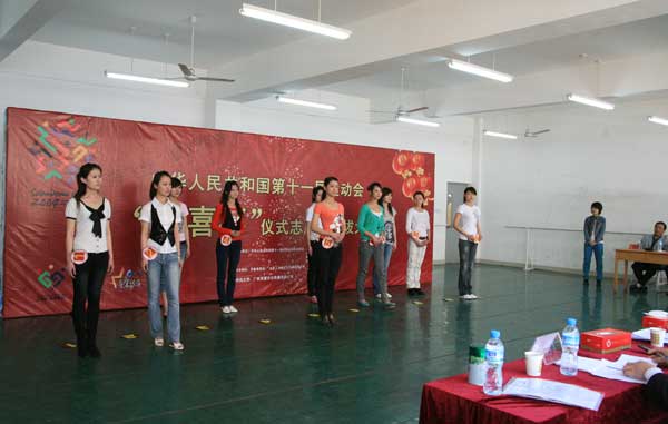 本次仪式志愿者选拔工作主要是为了满足第十一届全运会开闭幕式礼仪服务和竞赛颁奖仪式服务的需要而特意举办的,与其他赛事志愿者不同,仪式志愿者除了担任各代表团入场式以及颁奖仪式的礼仪工作之外,还将在全运会期间参加各项礼仪活动,因此专家组评委团对选手们在身高、体重以及形象气质等方面都提出了特别要求。