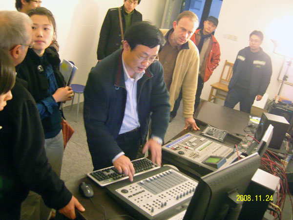 学术讲座结束后,两位专家参观了艺术文化学院媒体制作实验室,对该院的教学环境表现出极大的兴趣。