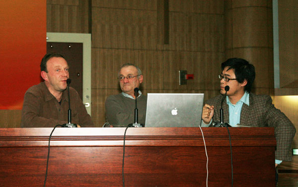 下午2:00点,温桑特·巴里教授和皮埃尔·克来顿先生在长清校区图书馆一楼报告厅举办了题为《纪录片电影与艺术》的学术讲座。讲座过程中首先放映了由他们主创的纪录片:以喜马拉雅山区景观为表现对象的《彩虹·记忆花园》和获得法国马赛国际纪录片电影节大奖的《干杯时光》,并对作品的创作理念进行了讲解。在现场互动环节中,两位专家结合作品就影片细节、创作思想、纪录片与艺术以及法国文化等话题回答了师生们的提问,现场师生对两位专家幽默机智的回答不时报以热烈的掌声,巴里教授也兴奋地说,你们的问题很有趣,法国的学生都提不出来。