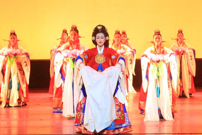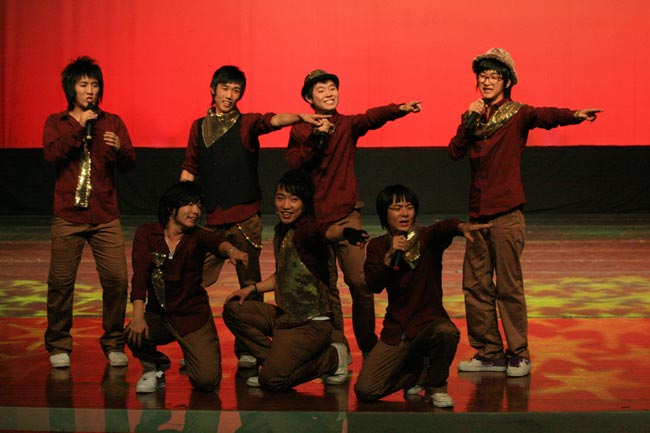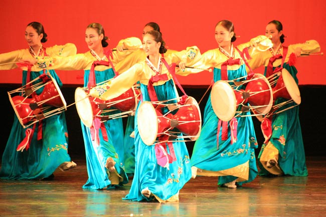 演出分上下两个时段进行。上半场,来自韩国檀国大学的金贤淑舞蹈团的师生们为观众们献上了原汁原味的民族舞蹈。绚烂多姿的《花冠舞》、悠雅别致的《扇子散调》、欢快明丽的《太平舞》、民族风格鲜明的《长鼓舞》让观众们饱览了韩国风情。上半场快要结束时,舞蹈团表演了节目《舞蹈把我们连在一起》,欢快的节奏中,中韩两国国旗从空中徐徐落下,演员们载歌载舞,表达了对两校友谊日久天长的深切祝福。