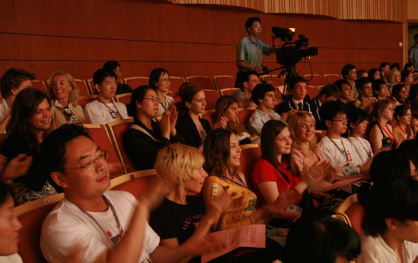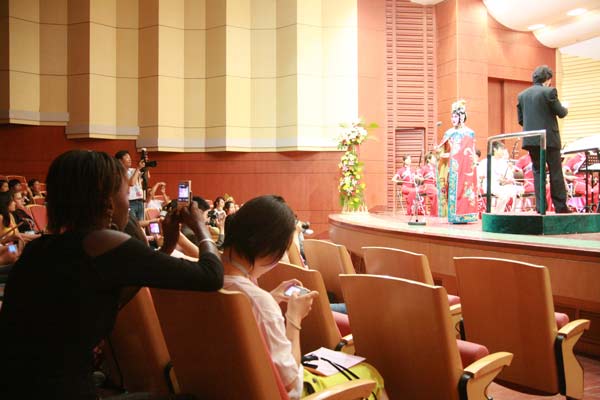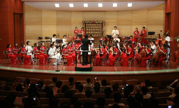 7月22日晚7时,为欢迎来自世界各地的首届“汉语桥”世界中学生中文比赛参赛选手的到来,山东艺术学院青年民族乐团在学院综合楼音乐厅举办了一场别开生面的中国民族音乐会,为前来比赛的118名外国小观众与随行人员送上了一场地地道道的中国民族音乐盛宴。国家汉办重大项目与交流处副处长李瑗、山东省教育厅副厅长杜希福、山东艺术学院副院长郭跃进到场观看了演出。