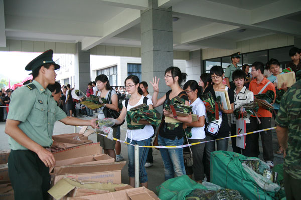 9日8时,新生报到工作正式开始。经过验证、交费、盖章、领校园卡、领军训服装等程序,新生们便可到各二级学院的迎新分理处报到登记、领宿舍钥匙,并由在那里等候的迎新志愿者们带到自己的“新家”。报到期间,学院主工作区和各二级学院的迎新场地里到处都是工作人员的身影。学生处、保卫处等等部门全员参与,共同做好现场秩序维护、办理流程引导、校园车辆疏导、交通秩序维持等工作,教务处、财务处、现教部等部门工作高效,盖章、收费、发放校园卡等工作有条不紊。前来为我院新生进行军训工作的部队官兵们一到学校便主动投入到了紧张忙碌的迎新活动中,他们主动承担起了维持现场秩序、发放军训服装等工作。