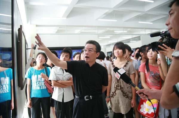 上午10时,画展开幕式在美术学院教学楼大厅举行。台湾长流美术馆馆长黄承志及夫人江梅香、副馆长张雨晴,山东省美术馆馆长陈国力,山东电视台节目部主任闫景东,我院党委书记柳文敏、院长张志民、党委副书记朱德强、副院长胡德定等出席开幕式。