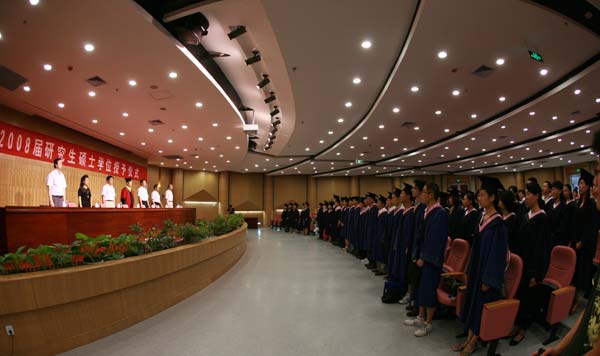 7月7日上午,我院2008届研究生硕士学位授予仪式在长清校区报告厅隆重举行。院领导张志民、朱德强、刘致兴、胡德定、郭跃进、江奔东、刘大力、各二级学院各部门的领导、研究生导师以及研究生任课教师、全体毕业研究生及他们的亲友们共400余人参加了仪式。党委副书记朱德强主持仪式。江奔东副院长在仪式上讲话,他指出,本届研究生在导师的辛勤培养下,学业努力,奋发向上,展现了良好的思想精神风貌;同学们在校期间参加或举办了160余次艺术实践创作展演活动,32场学术报告会,在学术期刊上发表论文152篇,学位论文质量优良,86位同学获得硕士学位;希望同学们毕业后认清我国社会发展的大趋势,继续加强学习,全面提高自身素质,做德艺双馨的艺术工作者,成为艺术家、艺术理论家、艺术教育家或艺术实业家,为祖国乃至人类的艺术发展做出应有的贡献,为母校争光添彩。 研究生导师代表田川流教授、毕业研究生代表孙彦峰同学、在校研究生代表王璇同学发言。张志民院长向86位同学颁发了学位证书。