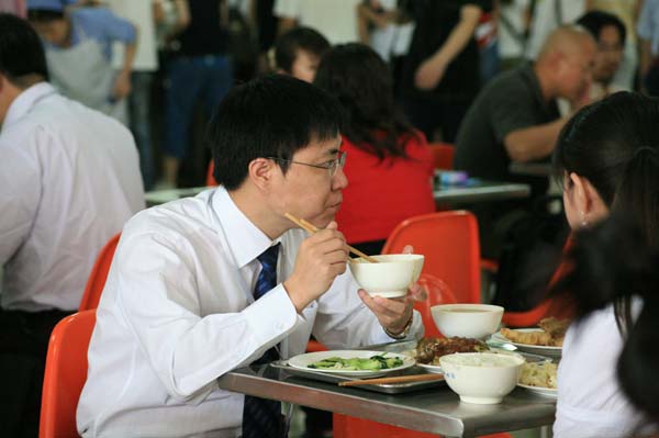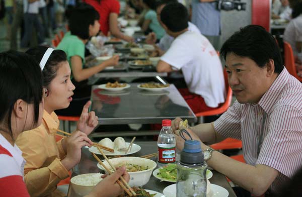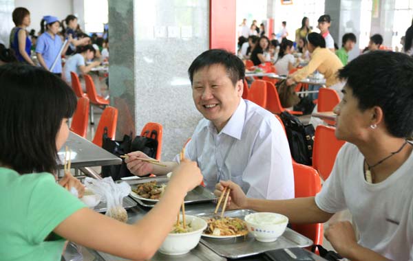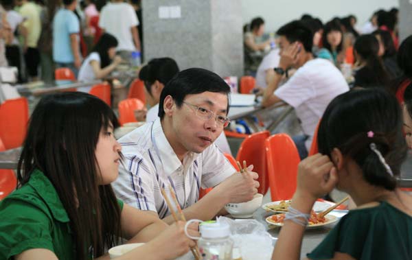 6月2日中午,教育部本科教学工作水平评估专家组一行在结束了一上午的听课、走访之后,来到我院长清校区学生餐厅进行考察。 正值中午就餐时间,专家组成员在各个窗口前与学生一起自觉排队,在进餐的过程中,评估专家与部分学生进行了亲切愉快的交流,他们详细了解了同学们在长清校区的学习情况和生活条件,询问了餐厅的伙食标准和质量。我院良好的就餐秩序、优良的服务和整洁的就餐环境给专家留下了较好的印象。 (供稿:评建办宣传组)