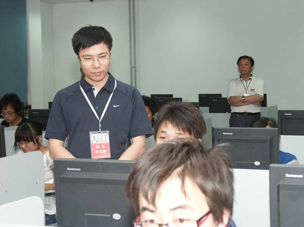 晚7点,教育部评估专家组秘书叶玉刚在信息网络中心楼第二机房对我院学生进行计算机技能测试。参加测试的为我院长清校区2006级学号尾数为“3”的50名同学,测试形式是80分钟的上机操作。整个测试按照我院考试组织程序严密进行。
