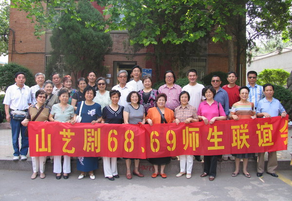 戏剧学院68、69级师生在当年的教学楼前合影留念
