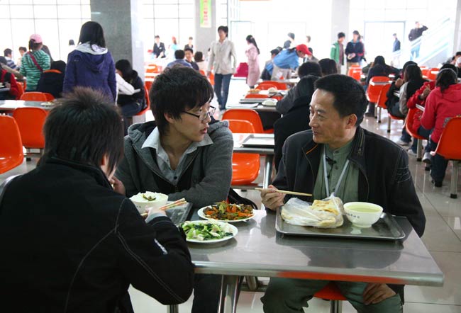 预评估专家组专家夏东伟考察学生食堂与学生共进午餐