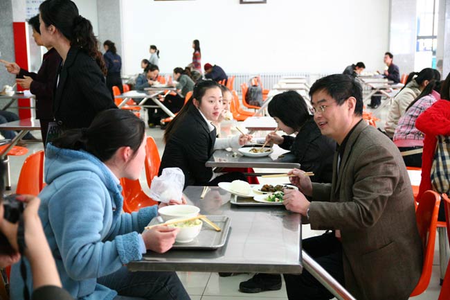 预评估专家组专家吴卫民考察学生食堂与学生共进午餐