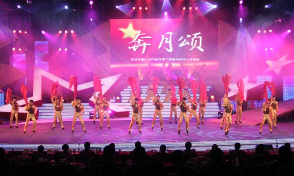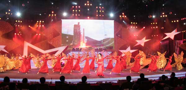 我院大型庆典歌舞《奔月捷报》拉开演出帷幕。