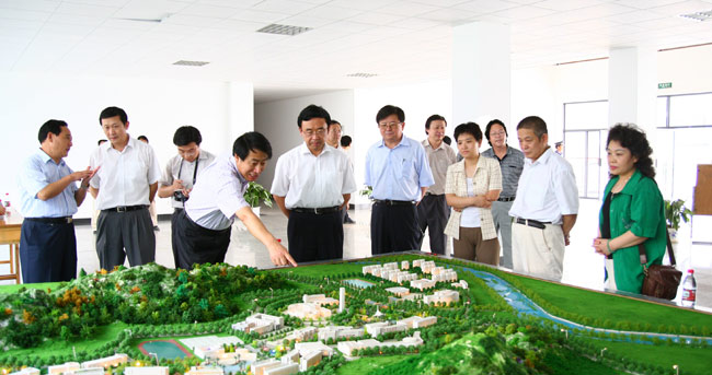 黄胜副省长一行首先来到我院长清校区规划模型前听取了我院长清校区的建设情况汇报。黄胜副省长详细了解了我院长清校区的建设进度、校园布局、教学场地、财政状况、办学条件、学生入住等情况,对我院新校区的建设成绩给予了充分的肯定。黄胜副省长一行还乘车实地查看了我院长清校区的校容校貌。