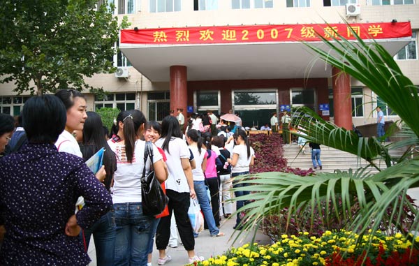 今年是我院新生数量最多的一年。学院十分重视,于13日上午召集有关单位负责人召开了迎新工作会议,研究部署今年的迎新工作。14日下午,大部分的新生报到准备工作就绪。文东校区的大门、综合楼前布满了鲜花,长清校区门口立起了两座漂亮的大型拱门,两校园内到处都悬挂着“欢迎2007级新同学”,“金秋送爽,喜迎八方学子;丹桂飘香,共祝美好明天”等红艳的横幅,宣传栏内贴上了“学院简介”、“美丽新校我的家”等精美图片,《新生报到须知》、《新生报到流程》等宣传板也已伫立在了校园主干道最醒目的位置。山艺以一身喜庆的新装迎接又一批新主人的到来。