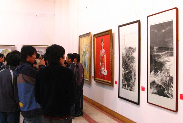 开幕式上,刘大力副院长代表学院领导发言。他指出,美术学院的这些参展作品是该院教师近几年通过坚持艺术实践,不断进行艺术创新而取得的成果,而此次展览就是对这些成果的一种社会展示。我院美术学科作为省级重点学科培养了大量专业人才。该学科的老师们在承担着大量教学任务的同时还坚持不懈地进行艺术思考与实践,此次展出的作品就是他们进行艰辛的艺术创作的真实写照。他希望美术学院的教师们继续坚持优秀的传统,坚持扎实的基本功,坚持艺术实践,坚持深入生活,坚持艺术创新,为我省文化建设做出更大的贡献。