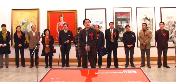 张一民在发言中首先代表山东省美术家协会向此次展览的开幕表示热烈祝贺。他说,山东艺术学院美术学院的教师们长期以来一直是我省高等美术教育和美术创作队伍中的一支生力军,是一支实力派队伍,有着良好的声誉和广泛的影响。山艺美术学科的发展凝聚着几代专家学者的心血,曾经几度辉煌,为山东的文化艺术繁荣和社会主义精神文明建设做出过重大贡献。他说,最近刚刚召开的第八次全国文代会号召大家:“一切有理想有抱负的文艺工作者,都要做到德艺双馨,积极履行人类灵魂工程师的职责”,此次展出的许多作品都传达出了较高的艺术境界,给我们以美的享受,具有创新意识,取得了创新的效果。最后,他祝愿山东艺术学院美术学院的教师们在今后的教学工作和艺术创作两个方面都取得更大的成绩。