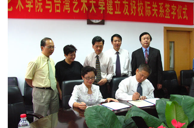我院院长张志民与台湾艺术大学张浣芸副校长在校际友好关系协议书上签字。