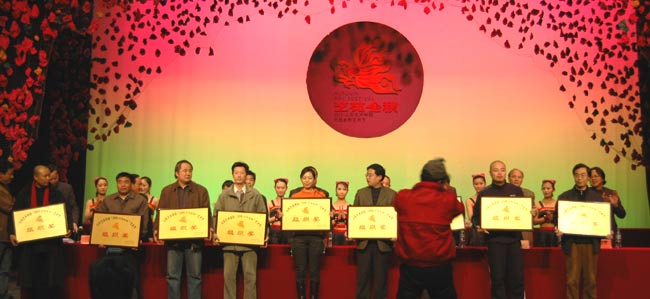 院长张志民的讲话令人振奋,全场掌声雷动。随后,副院长江奔东宣布了2005年我院师生在各类省级以上演展比赛中获奖人员名单。副院长王力克宣布了本届艺术节组织奖获奖单位名单。各获奖单位代表激动地从院领导手中接过金灿灿的奖状。艺术剧场再次沸腾了。