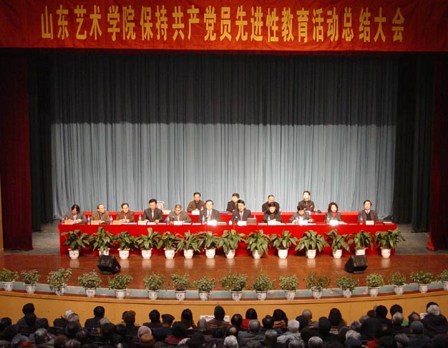 省委高校工委先进性教育活动第四指导组组长、济南大学纪委书记车滨同志在讲话中指出山东艺术学院党委和各级党组织,认真贯彻执行中央和省委的要求,始终高度重视,精心组织,率先垂范;全院党员积极参与,从我做起,大力支持,没有辜负上级党组织和广大党员群众的希望,圆满完成了先进性集中教育活动的各项任务,达到了预期的目标。他说,通过教育活动,艺术学院广大党员学习实践“三个代表”重要思想的自觉性有了新的提高,理想信念更加坚定;基层党组织的创造力、凝聚力、战斗力有了新的增强,政治核心作用和战斗堡垒作用更加显著;党员的整体素质和整体形象有了新的提升,先锋模范作用更加突出;先进性建设长效机制方面有了新的举措,党建和思想政治工作更加有力;落实科学发展观,推动学院各项工作方面有了新的进展,做出的成绩和发展的前景让人更加鼓舞。