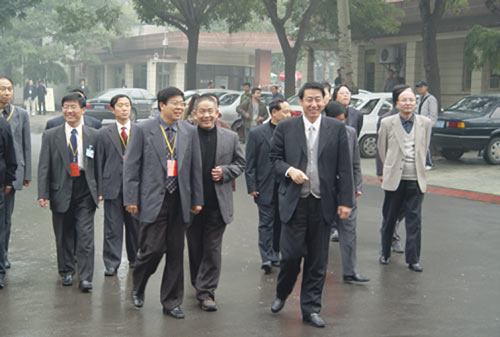 下午4时,评估组专家准时莅临我校。图为专家们在院领导的陪同下步入综合楼。
