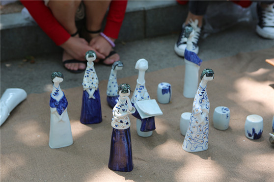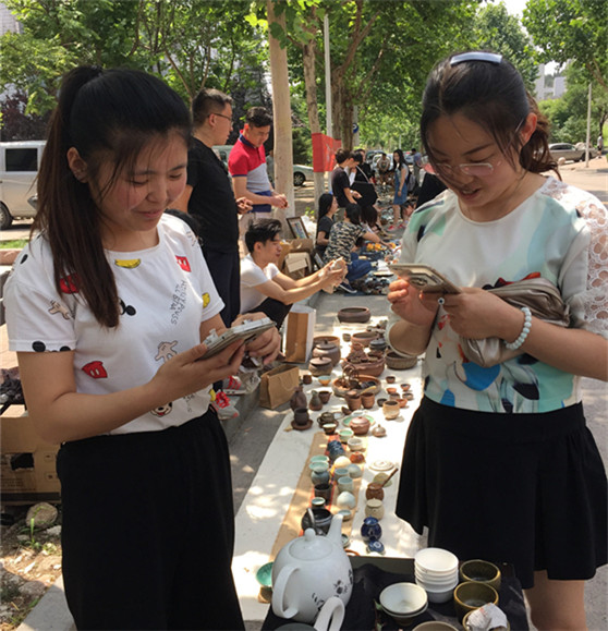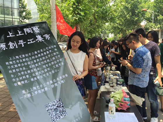 6月1日,学校长清校区食堂对面的林荫道旁人潮涌动,上上陶艺手工创意市集开市啦。