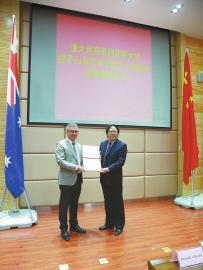 时报讯(记者邢媛)3月22日上午,澳大利亚哥利菲斯大学授予山东艺术学院院长王力克荣誉教授称号证书颁发仪式在山东艺术学院长清校区举行。